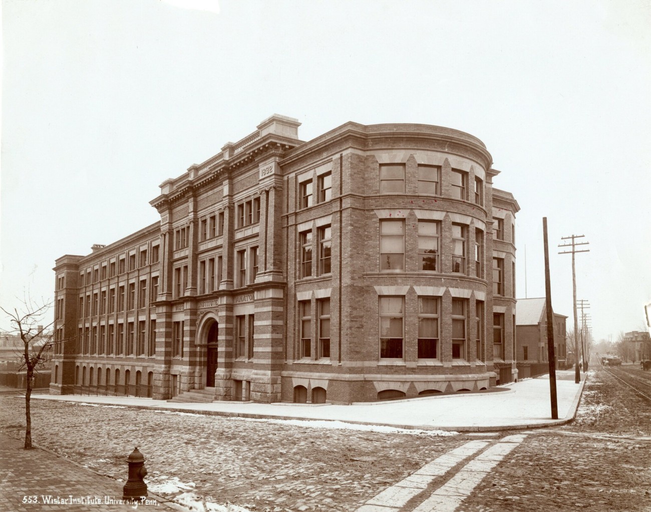 In 1892, the original building of the Wistar Institute was constructed, and today still a part of the Institute’s research facility, was designed by Philadelphia architects George W. and William G. Hewitt, and sits at the corner of 36th and Spruce streets.
