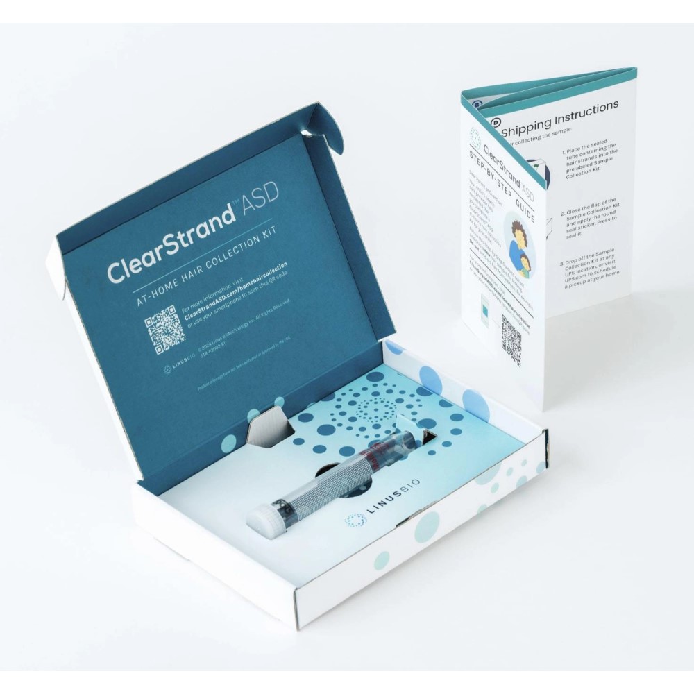 ClearStrand-ASD must be ordered by a licensed health care provider. LinusBio enables caregivers to request the test from home through an independent telehealth provider. The test is intended for infants and toddlers who are at an elevated risk of autism, such as those who were born preterm, who have a sibling with autism, or who have demonstrated characteristics associated with autism. If the test does not detect the biomarker, it is unlikely the child has autism. If the test does find the biomarker, the child may need further professional evaluation. ClearStrand-ASD is available in 44 states (excluding CA, HI, MD, NY, RI, PA, and DC).